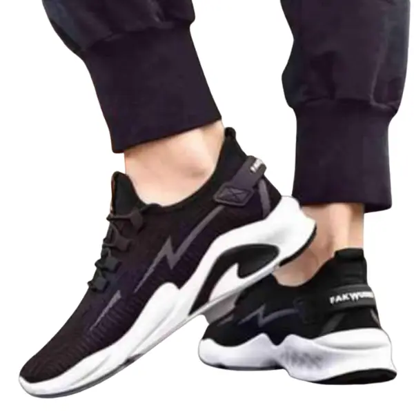 We understand that a man’s shoe needs to be versatile. It must look sharp enough for semi-formal settings yet feel supportive enough for a full day on your feet. Our smart shoes achieve this balance flawlessly. The striking black upper is crafted from a high-quality, breathable knitted mesh material. This not only gives the shoe a premium, contemporary look but also promotes maximum air circulation, preventing overheating and keeping your feet fresh. The lightweight nature of the shoe dramatically reduces foot fatigue, making them ideal for long hours of wear.