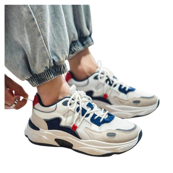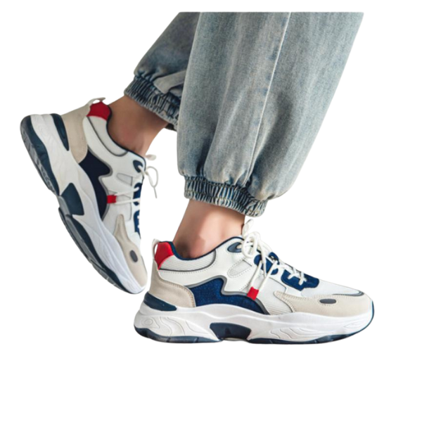Their ultra-lightweight structure means you can run faster and move longer without feeling heavy. The stylish color blend of white, navy, and beige adds a trendy touch that goes perfectly with jeans, joggers, or sports outfits.